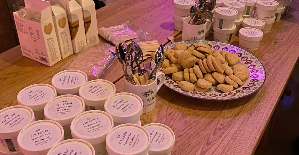 Guests enjoyed mulled cider, draught beers, and G&Ts from Campervin's Landrover bar. Scottish Reeling expert John Carver provided lively music. Delicious antipasti and pizzas were served by Dough Wood Fired Pizza, followed by homemade ice cream from Fir Farm for dessert.